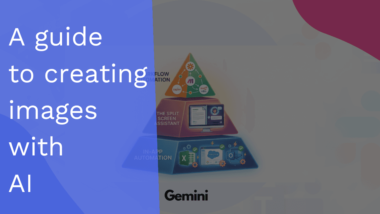 "I want to create an image for my YouTube video that showcases a pyramid with three layers of automation a business can implement: at the bottom, there's 'in-app automation', in the middle there's 'the split screen assistant' (aka using ChatGPT or Gemini in an ever-open window), and at the top there's 'workflow automation' (n8n, Zapier, Make). The video's a balance between professionalism and a casual look. Help me write a prompt for an LLM to make this image - I will also create a rough sketch so the prompt should mention it."